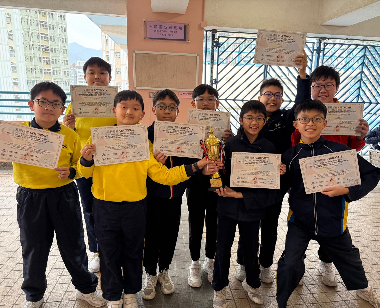 本校小六的數學隊同學早前代表學校參加由香港資優教育學會舉辦的「2026 環亞太杯國際數學邀請賽初賽」,憑藉紮實的數學基礎、靈活的解題思維與出色的團隊合作精神,在眾多參賽隊伍中脫穎而出,共獲得多項個人及團體殊榮,成績斐然,展現了本校學生在數理領域的優秀潛能。