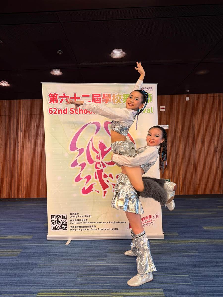 6D 班何悅同同學及6E班張曉彤同學於現代舞(雙人舞)比賽中演譯舞蹈名為《GOOD THING》,取得甲級獎。