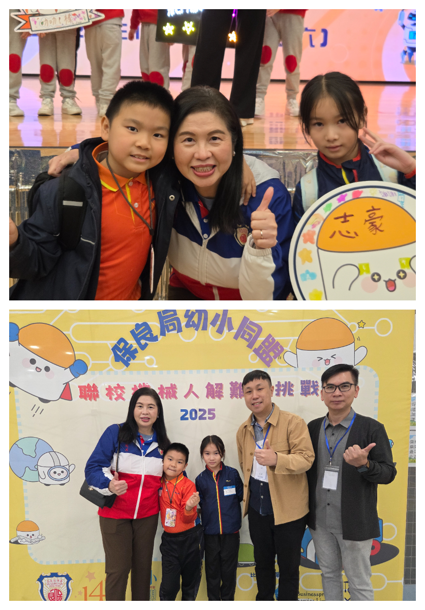 本校學生參加保良局幼小同盟聯校機械人解難大挑戰兩位同學晉身決賽,是次比賽頒獎典禮邀得 創新科技及工業局副局長張曼莉太平紳士,以及 阿里雲智能香港及澳門資深顧問兼大灣區國際信息科技協會副會長車品覺太平紳士擔任主禮嘉賓。