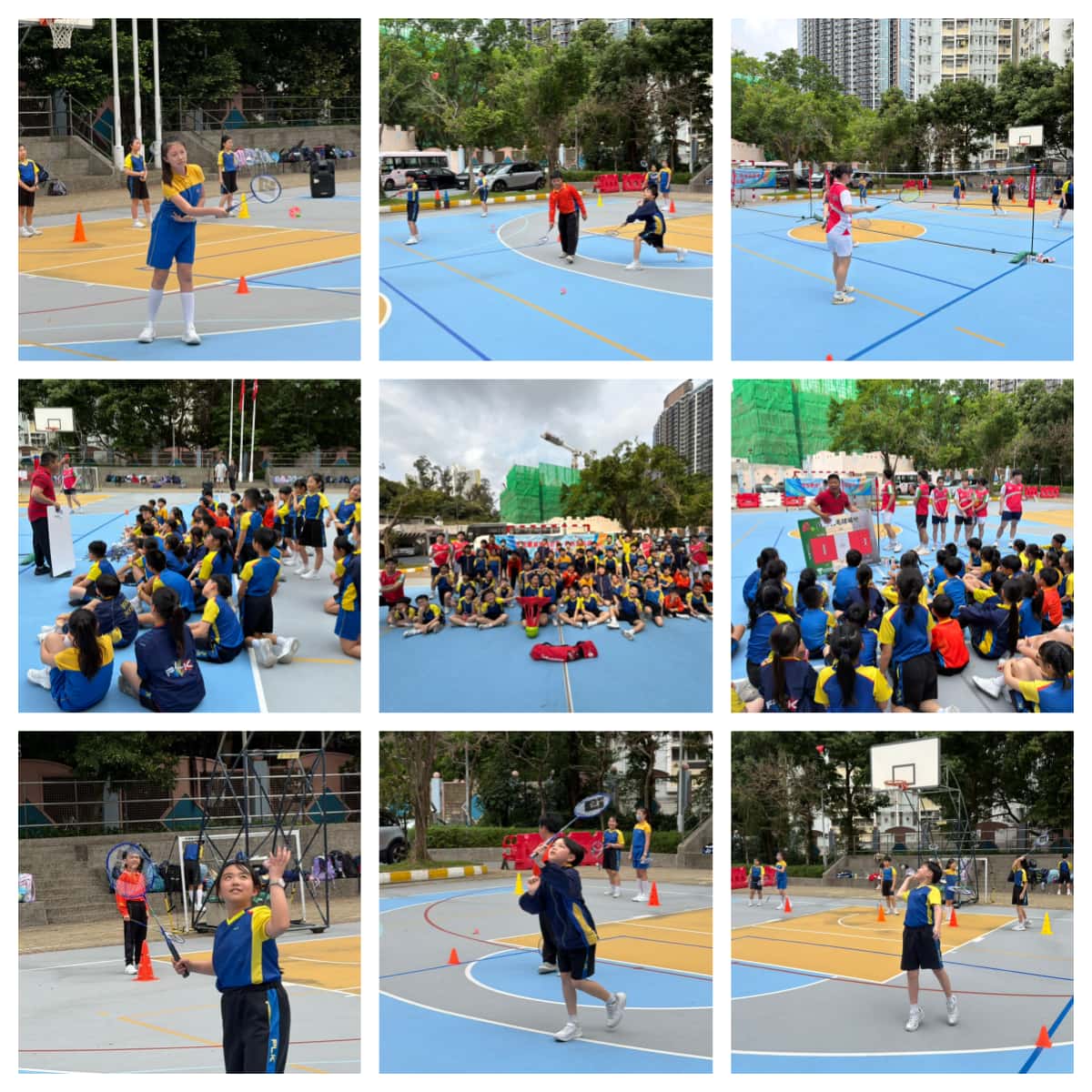 中國香港羽毛球總會為學校舉辦戶外羽毛球示範活動,向學生介紹戶外羽毛球的規則和技巧,讓其了解羽毛球和戶外羽毛球的分別,學生更可與香港羽毛球代表隊進行對打,體驗戶外羽毛球的樂趣。